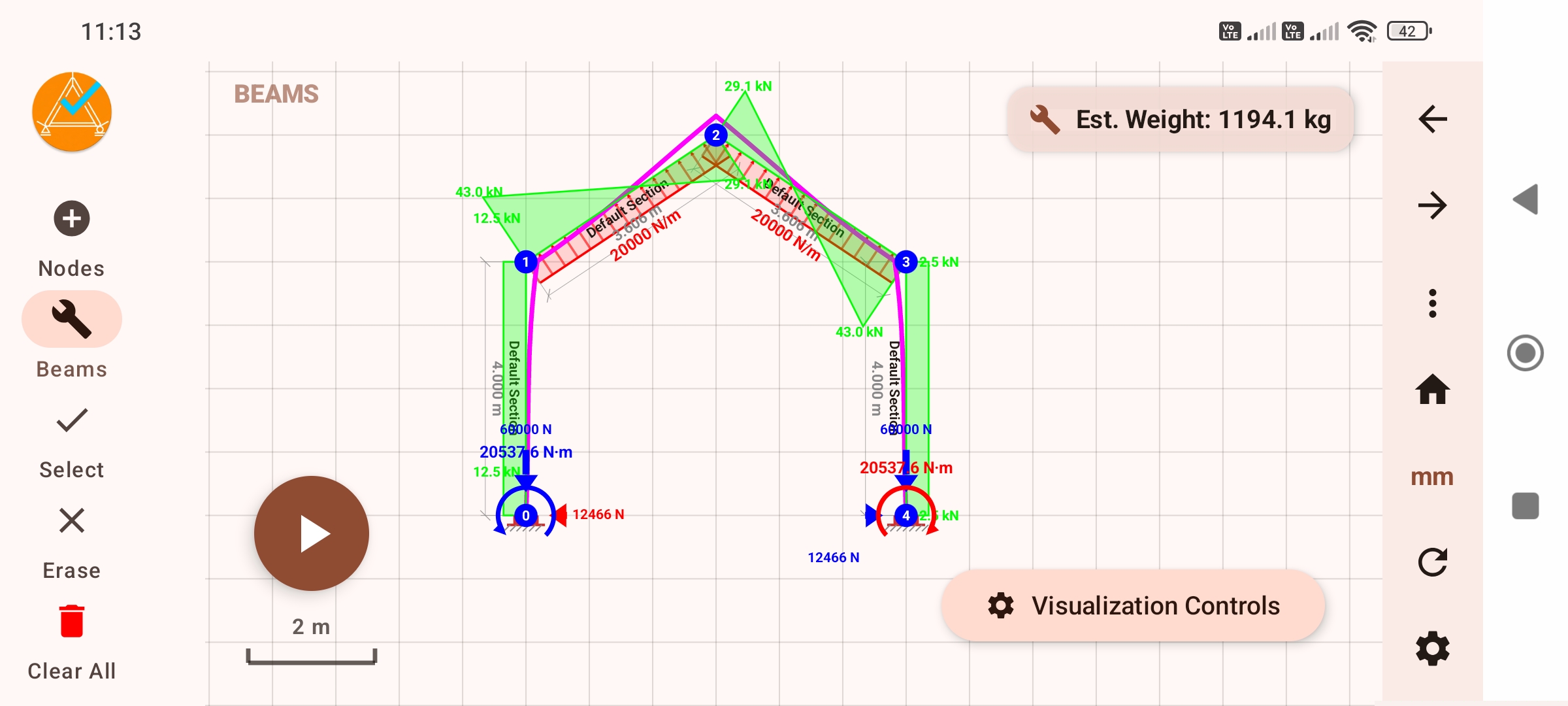 ⚖️ Weight Estimation: Calculate total structure weight instantly, with options to include or exclude self-weight in your analysis.