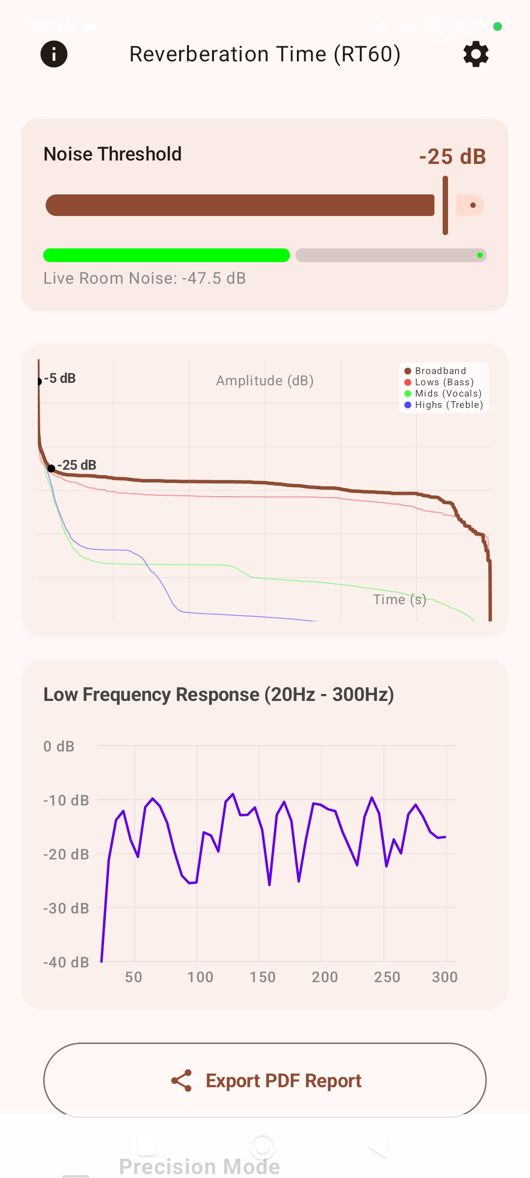 WYSIWYG PDF Export: Generate and share pixel-perfect, scrollable PDF acoustic reports of your room's dashboard to keep track of your progress as you add acoustic treatment.
