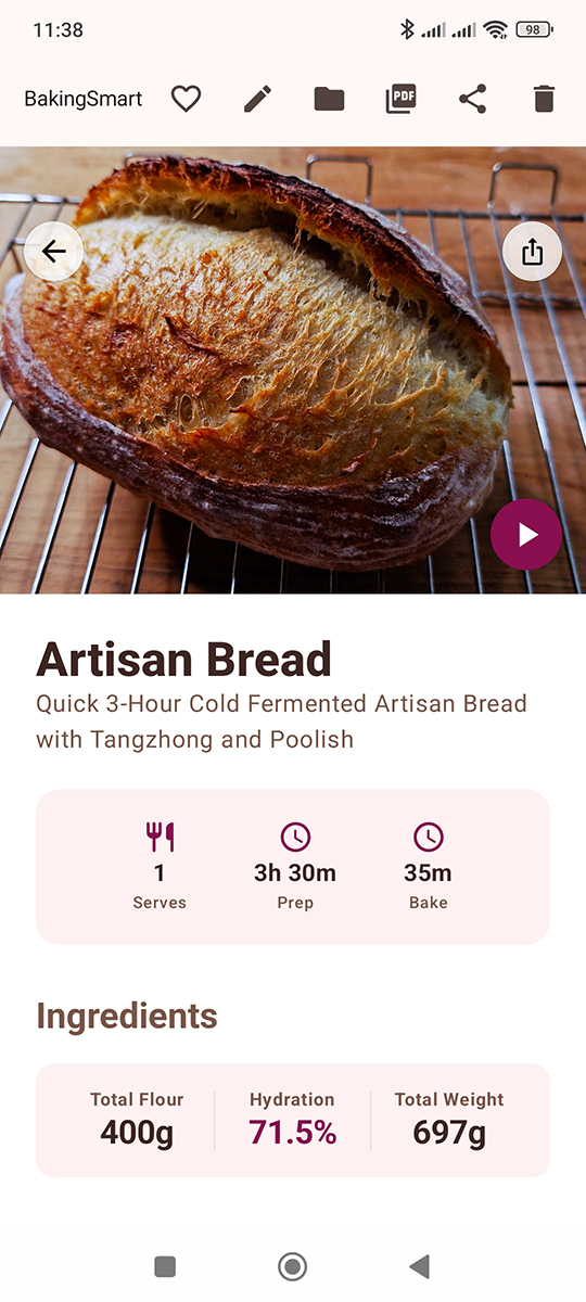 For your convenience, we have uploaded our popular Artisan Bread recipe for AndroXplorer BakingSmart to our web page!🎉 This is one of the sample recipes pre-installed with the app.